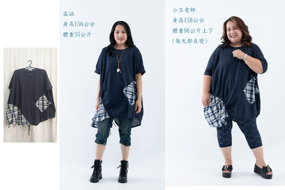 SEDA 超大尺碼圓領側邊格子上衣~胸圍52英吋~1111005