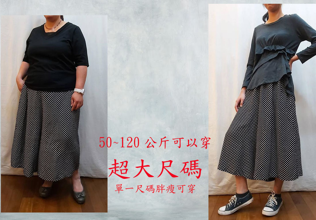 SEDA 中.大.超大尺碼圓點寬褲裙.50~120公斤皆可穿