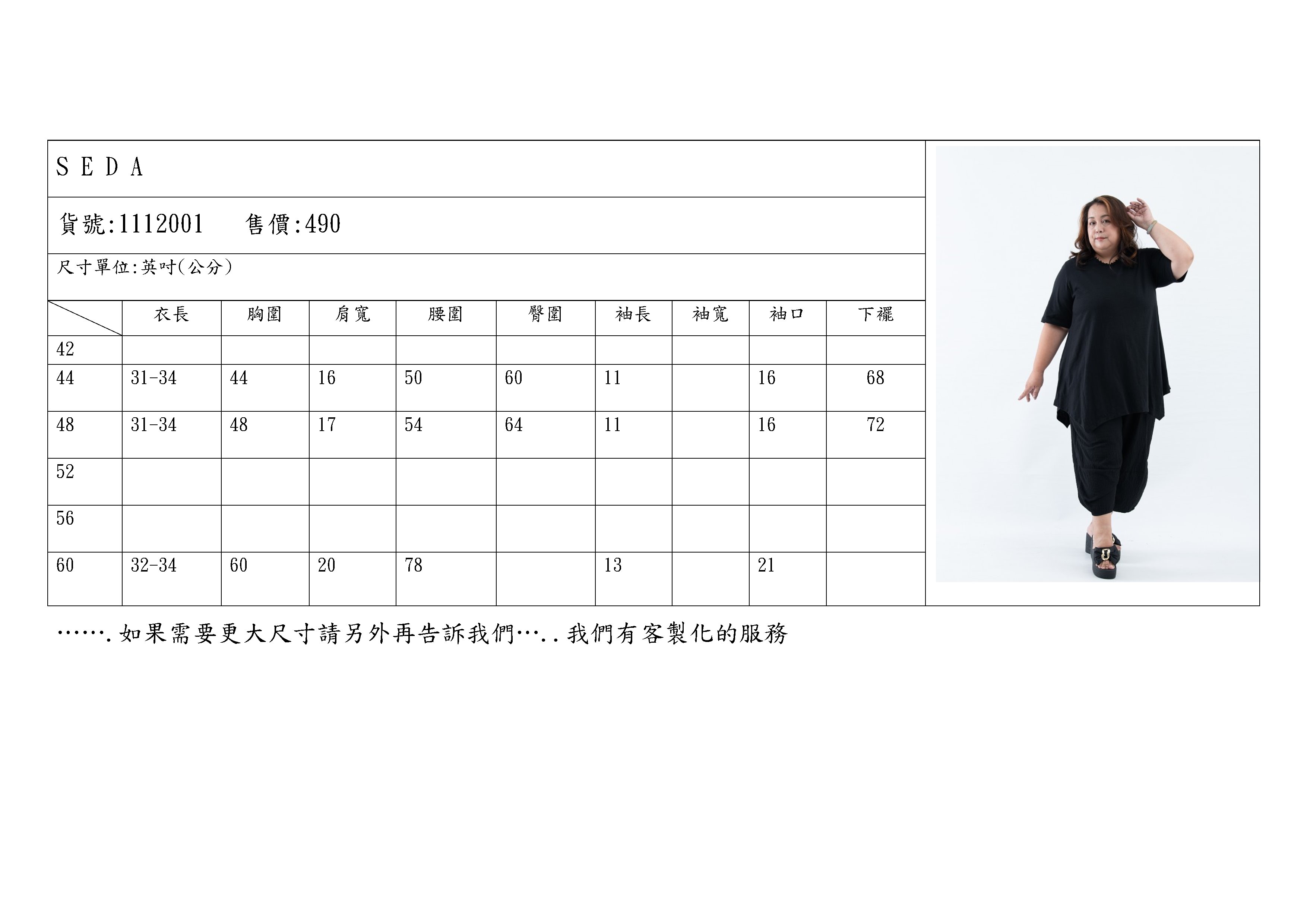 SEDA 大尺碼 領口V領下擺不規則加長上衣胸圍44.48.60英吋~體重60~150公斤左右都可以穿