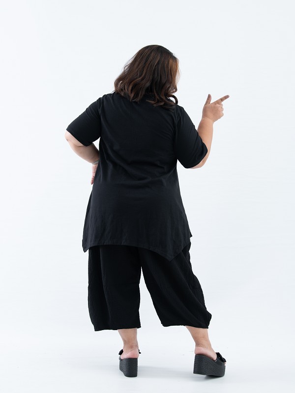 SEDA 中大超大尺碼圓領短袖下擺格子加長上衣 【1111006】