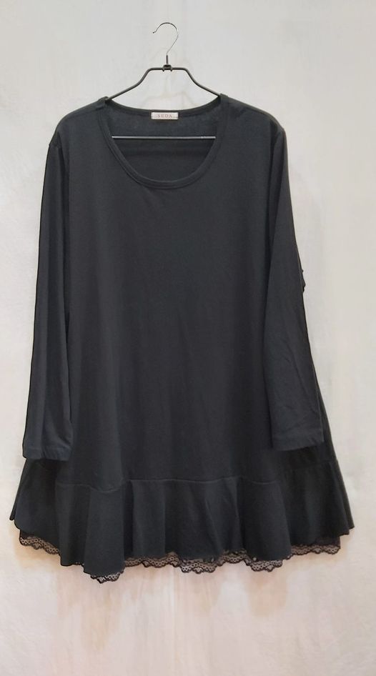 SEDA 超大尺碼 圓領長袖下擺荷葉裙擺洋裝兼長版上衣100-150公斤皆可以穿)