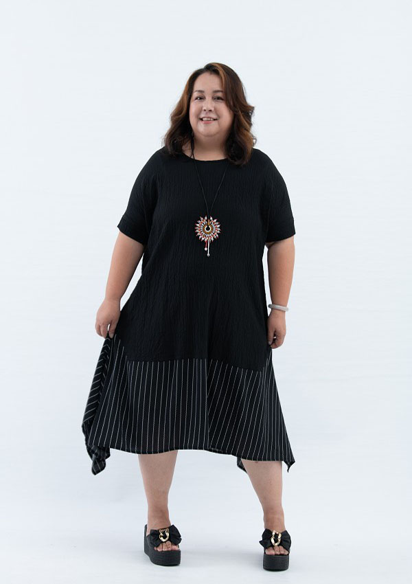 SEDA 超大尺碼圓領短袖下擺不規則條紋剪接~胸圍60英吋~1115005
