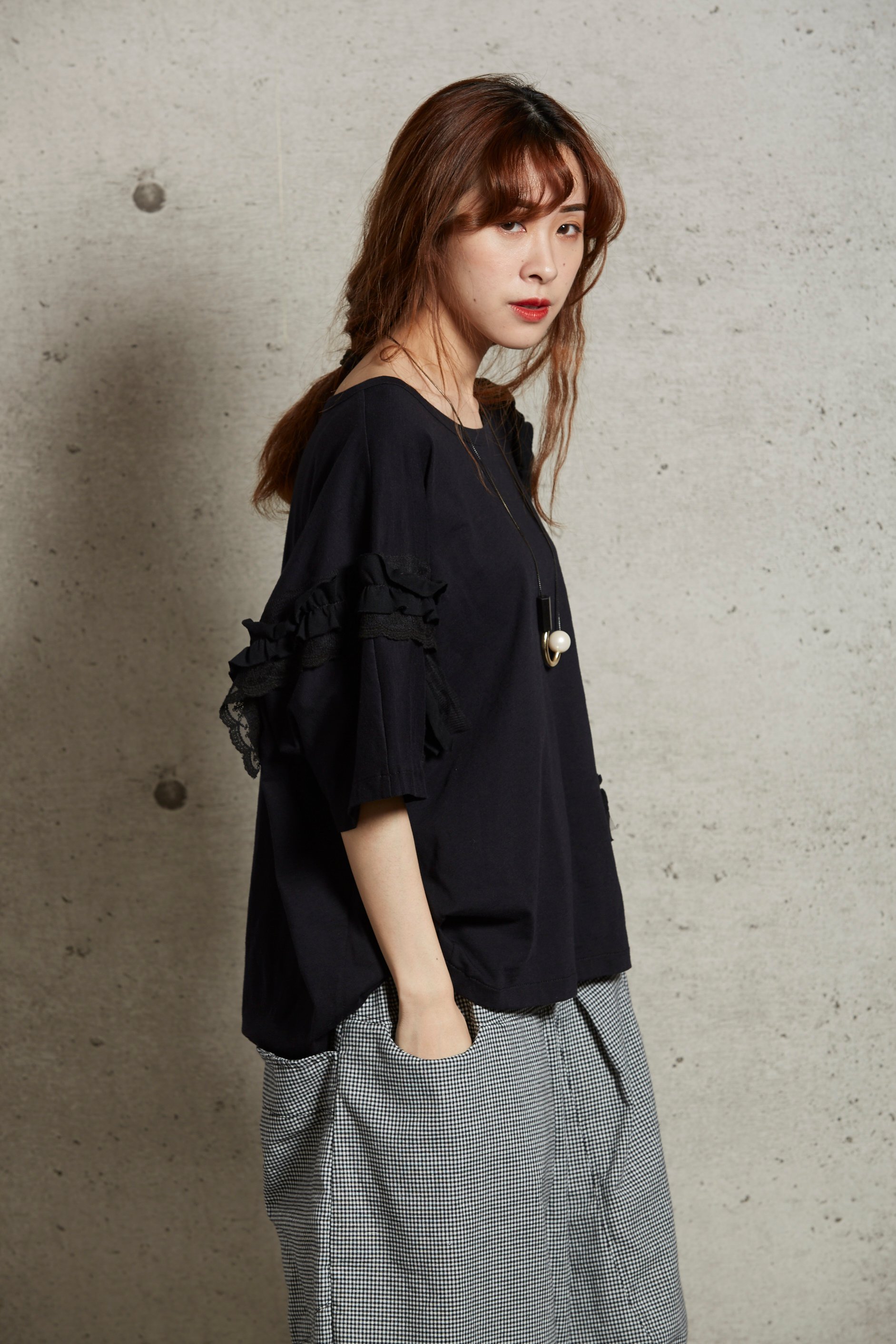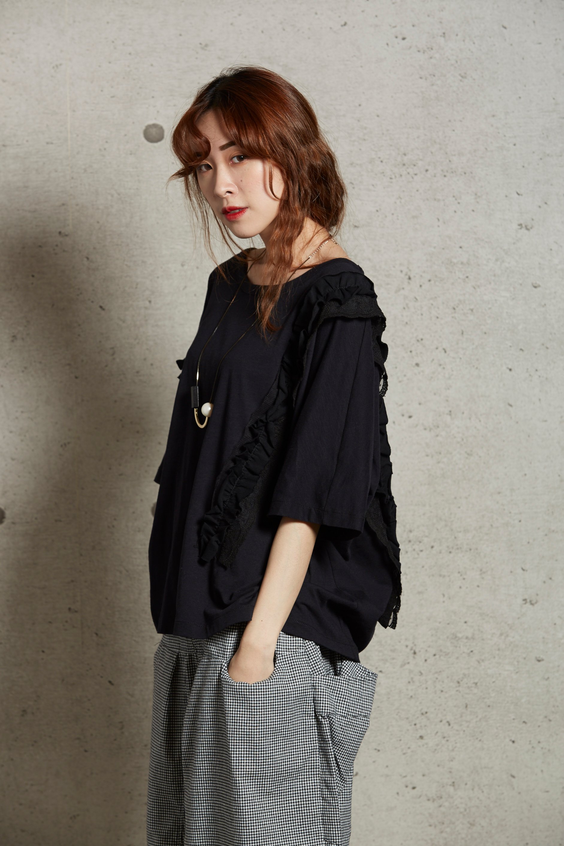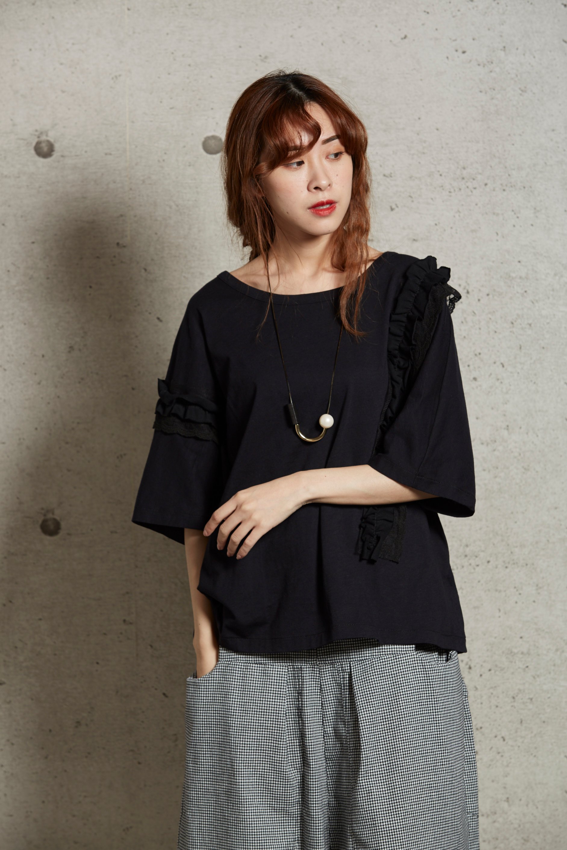 gd shop 1722011 不對稱蕾絲荷葉上衣